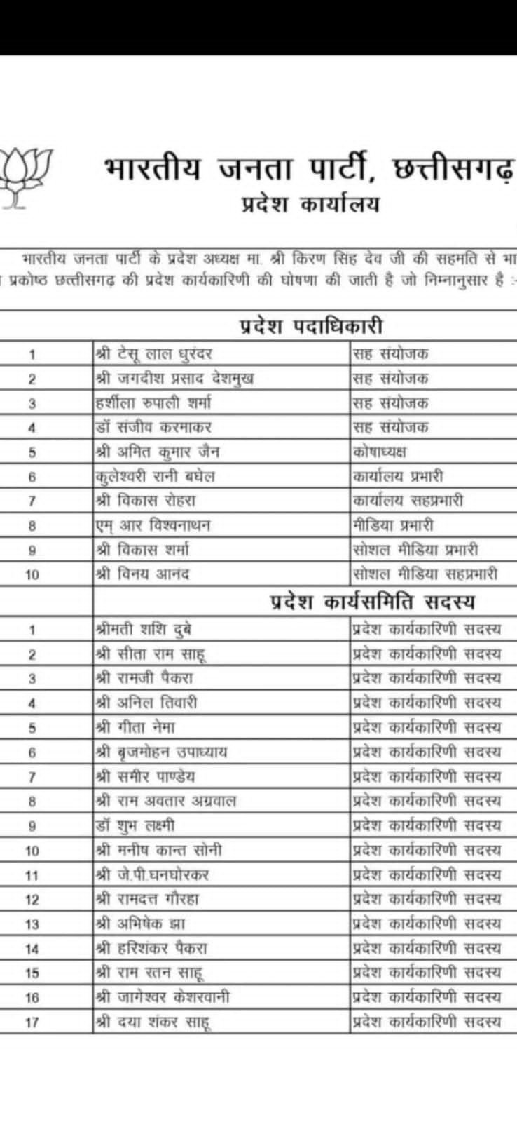 वहीं, श्री बृजमोहन उपाध्याय और जेपी घनघोरकर की प्रदेश कार्य समिति में उपस्थिति भिलाई की आवाज को राजधानी तक और अधिक प्रखरता से पहुँचाने का कार्य करेगी।
