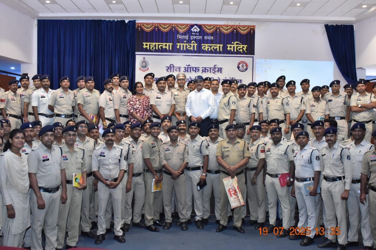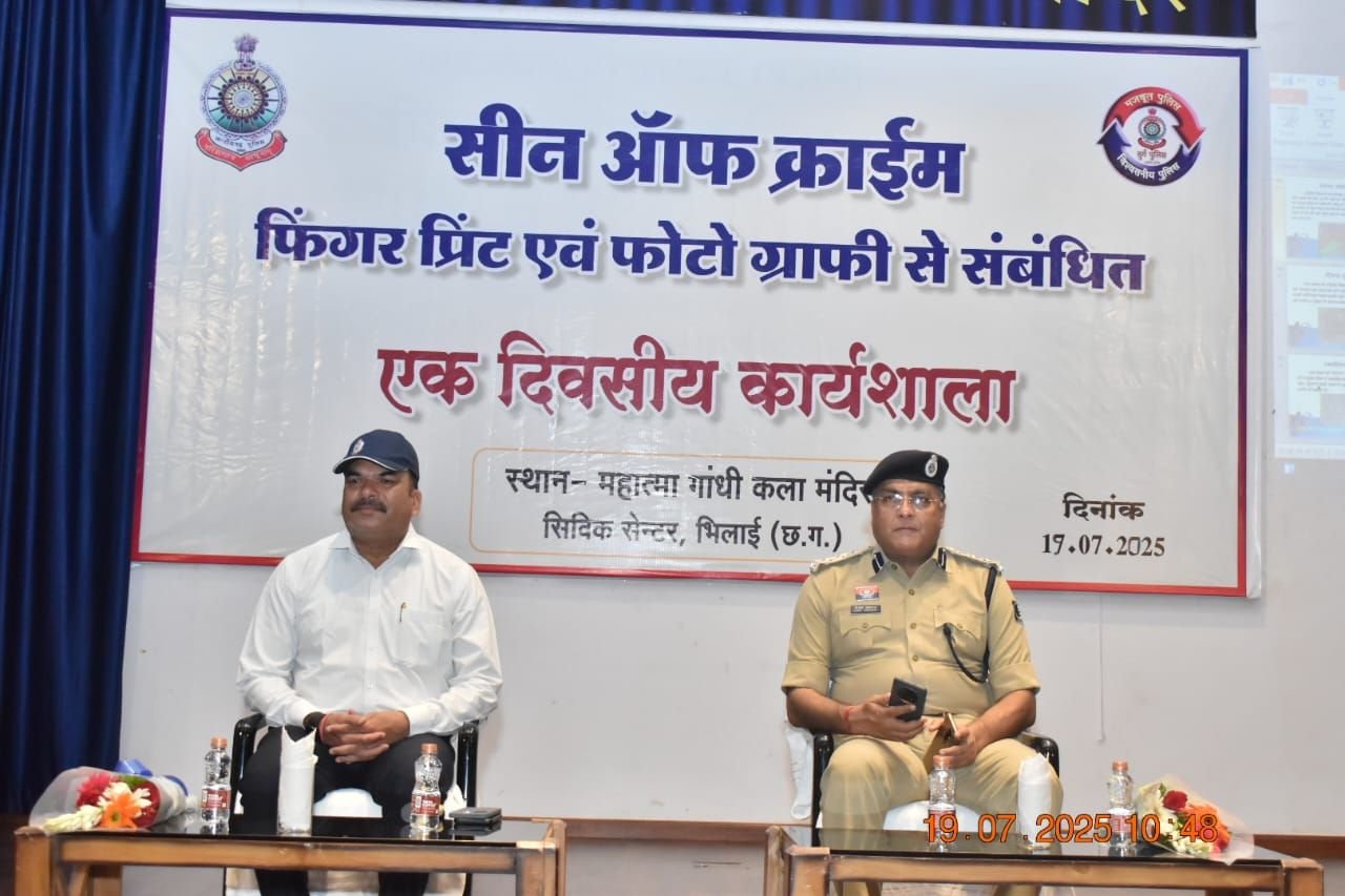 भिलाई नगर 19 जुलाई 2025:- सीन ऑफ क्राईम में फिंगरप्रिंट एवं फोटोग्राफी के महत्व के संबंध में कार्यशाला का आयोजन, महात्मा गांधी कला मंदिर, सिविक सेंटर, भिलाई में किया गया आयोजन।